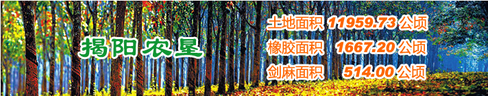 廣東省揭陽農墾集團有限公司(農墾局)下轄6個農場有限公司。墾區管轄26個代管村,現有總人口5.11萬人,墾區土地面積17.77萬畝,目前種植天然橡膠3.13萬畝,水果 2.57萬畝,光伏農業0.8萬畝,并探索發展一批特色產業等。